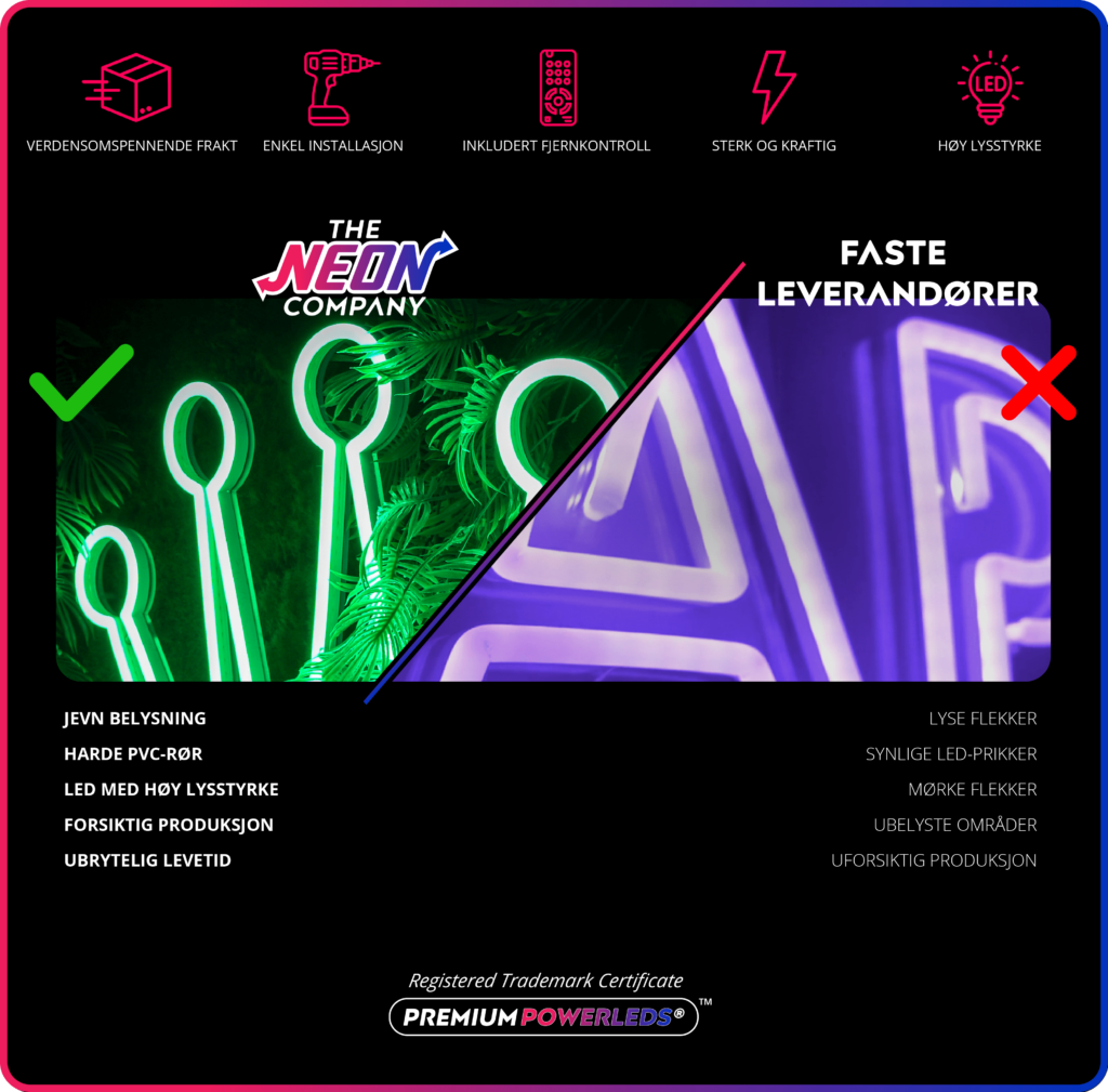 Velg Express-alternativet når du bestiller og motta neonskiltet ditt mellom 27 april og 1 mai (6-10 virkedager).